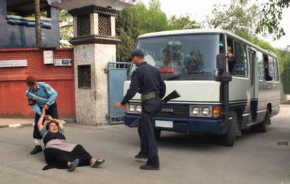 Augenzeugen zufolge packten am Samstag, den 31. Mai, um 5.45 Uhr die nepalesischen Behörden 18 tibetische Flüchtlinge aus dem Hanuman Dhoka Gefängnis in Kathmandu in ein Fahrzeug der chinesischen Botschaft. Die Flüchtlinge waren in einem verzweifelten Zustand und riefen um Hilfe, während sie in den Bus geladen wurden. Die Flüchtlinge wurden von dem Fahrzeug der chinesischen Botschaft in Kleinbusse ohne Nummernschilder geladen und zum Kathmandu Police Club gebracht worden. Etwa zwei Stunden später starteten die Fahrzeuge zusammen mit dem Wagen der chinesischen Botschaft zur nepalesisch-tibetischen Grenze. In den Fahrzeugen befanden sich auch einige nepalesische Polizisten. |