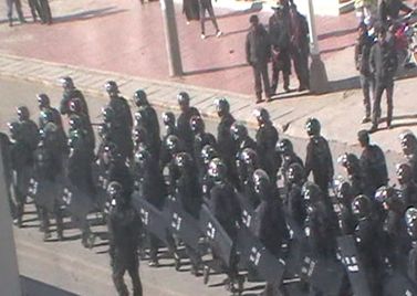 Bewaffnete Volkspolizei auf dem Hauptmarktplatz in Ngaba (Bild von Free Tibet)