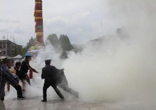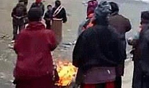 Selbstverbrennungen am Barkhor und Löschung durch die Polizei (Bild: Woeser's Blog)