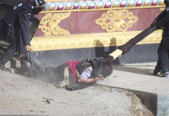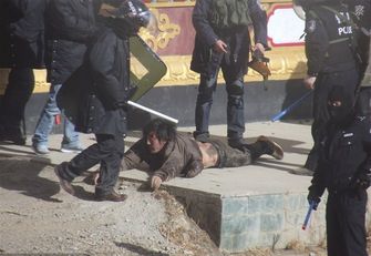 Aufwühlende Bilder des Polizeieinsatzes in Serthar erreichen das ExilDie Bilder sind von den Protestaktionen, die am 24. Januar in Serthar in Osttibet stattfanden, als sich eine große Menge Tibeter in der Bezirksstadt versammelte, Parolen rief und für Tibet die Unabhängigkeit forderte. Über 600 chinesische Sicherheitskräfte waren sofort zur Stelle und begannen, wahllos in die Menge zu schießen. Quellen im Exil zufolge erlitten mindestens fünf Tibeter tödliche Schußverletzungen, während über 40 weitere schwer verletzt wurden. Die Bilder, die aus zwei verschiedenen Quellen stammen, zeigen, wie die chinesische Polizei mit Schlagstöcken auf unbewaffnete tibetische Protestierende einschlägt, einer liegt mit dem Gesicht nach unten auf der Straße. Ein weiteres Bild zeigt zwei chinesische Sicherheitsleute, die einen am Boden liegenden verletzten Tibeter an Armen und Beinen auf der Straße zur Polizeistation zerren. Tibetischen Quellen zufolge sei der Marktplatz in Serthar am 24. Januar „blutüberströmt“ gewesen. Der Mann, der starb, wurde von ihnen als Dawa Dragpa identifiziert, und am 1. Februar hielten Tibeter in Serthar eine Trauerfeier für ihn ab. „Wir wissen, daß diese entsetzlichen Szenen, welche die Bilder aus Serthar uns vor Augen führen, für ganz Tibet exemplarisch sind, und sich überall dort abspielen, wo Tibeter von den chinesischen Behörden angegriffen und schikaniert werden, nur weil sie ihr grundlegendes Menschenrecht auf Freiheit geltend machen“, sagte Tenzin Dorjee, der Direktor von Students for a Free Tibet. Auf einem anderen Foto sieht man, wie Dutzende von chinesischen Polizisten auf einen Tibeter zurennen, während um ihn herum Flugblätter in der Form von traditionellen Gebetswimpeln auf der Straße verstreut liegen. Free Tibet aus London erklärte, die Bilder seien bezeichnend für die brutale Form der Besatzung Tibets. „Obwohl China alles daran setzt, den Informationsfluß zu stoppen, machen diese Bilder die Entschlossenheit der Tibeter deutlich, der Welt das vor Augen zu führen, was China vor ihr verborgen halten will“. „Kann die internationale Gemeinschaft denn immer noch wegschauen, obwohl die Brutalität der Besatzer doch so deutlich für alle zu sehen ist?“ Seit den landesweiten Demonstrationen, die das tibetische Hochland 2008 überzogen, ist die Gegend um Serthar ein Zentrum des tibetischen Widerstandes geworden. Letztes Jahr, am 1. Oktober, dem chinesischen Nationalfeiertag, entrollten die Tibeter in Serthar ein riesiges auf Stoff gemaltes Portrait des Dalai Lama und zogen die tibetische Nationalflagge auf dem Dach eines dreistöckigen Gebäudes in der Innenstadt auf. Als die Behörden die Flagge und das Portrait entfernen ließen, kam es zu Protestreaktionen. Noch vor der Massendemonstration am 24. Januar protestierten die Tibeter in ländlichen Teilen Serthars am 18. und am 22. Januar. Von einer größeren Demonstration am 23. Januar in der Stadt Serthar wird ebenfalls berichtet, bei der ein Banner mit der Aufschrift „Wir wenden uns gegen die verfehlte Politik Chinas in Tibet“ entrollt wurde. Die gesamte Gegend steht unter strengster militärischer Überwachung, Telefon- und Internetverbindungen wurden untergebrochen. Die Bilder gibt es auf mehreren Websites:Woesers Blog (eine komplette Reihe) |