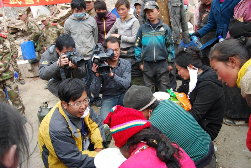 Tibeter aus Yushu, wo Tausende von Menschen, hauptsächlich Tibeter, bei dem Erdbeben am 14. Aprilumkamen, sagen, die Berichterstattung über die Rettungs- und Aufräumarbeiten der staatlichen Medien sei weit davon entfernt, die tatsächliche Lage vor Ort wiederzugeben. „Für uns arme Bauern kam die wahre Hilfe von den Mönchen der verschiedenen Klöster, sowohl für jene, die gestorben sind, als auch für jene, die überlebten“, sagte ein Tibeter aus Yushu. „Und jetzt haben die chinesischen Behörden alle tibetischen Mönche aus der Gegend verjagt“.
