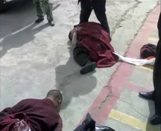 Polizei mißhandelt Mönche im März 2008, aus dem Video "Torture in Tibet"