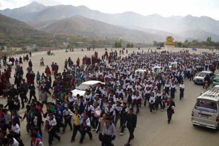 Pädagogen in Amdo wegen der „Sprach-Proteste“ Anfang des Jahres dienstenthobenZwei Lehrer und ein Schulrat sind nach den Protestaktionen tibetischer Schüler im nordwestlichen China Anfang dieses Jahres für das Recht auf die Verwendung ihrer eigenen Sprache von ihren Posten entfernt worden, während die Behörden weiterhin gegen jeglichen Versuch der Einforderung des Rechtes auf die eigene Kultur und nationale Identität streng vorgehen. Ein Bewohner der betreffenden Gegend, der anonym bleiben möchte, nannte den Schulrat als Tsenden Gyal, 48, von der Bildungsbehörde des Bezirks Tsekhog in der TAP Malho (chin. Huangnan), Provinz Qinghai. Und die Lehrer identifizierte er als Pado, 42, Rektor der Bezirks-Mittelschule No. 1, und Jigdo, 44, Rektor der Bezirks-Mittelschule No. 2. Obwohl es nicht ganz klar ist, wann die Entlassungen erfolgten, wird angenommen, daß sie im Zusammenhang mit den Demonstrationen tibetischer Schüler in drei Bezirken von Qinghai stehen, die im März gegen die Pläne zur Einführung von Chinesisch als erster Unterrichtssprache, anstatt wie bisher Tibetisch, protestierten. Zu der ersten Protestaktion kam es am 4. März 2012, als 700 Schüler der Minderheiten-Mittelschule im Bezirk Rebkong bei ihrer Rückkehr aus den Ferien feststellen mußten, daß die Schulbücher für das neue Semester plötzlich alle auf Chinesisch waren, heißt es in einer Mitteilung von Free Tibet vom 8. März (1). „Sie zerrissen die Bücher und wollten in die Stadt marschieren, um das Recht auf ihre eigene Sprache einzufordern, doch die Lehrer brachten sie von ihrem Vorhaben ab.“ Eine Woche später protestierten auch die Schüler aus den Bezirken Tsekhog und Kangtsa, die Parolen wie „gleiche Rechte“ und „Freiheit der Sprache“ riefen (2). In Tsekhog forderten sie auch die Schließung einer chinesischen Militärkaserne vor Ort. „Die Schüler marschierten zu den Gebäuden der Bezirkspolizei, der paramilitärischen Polizei und zu der Bezirksverwaltung“. Sicherheitskräfte waren bald zur Stelle, aber man hörte nichts darüber, daß Schüler verprügelt oder festgenommen worden seien. (1) 8 March 2012, „Hundreds of students join (2) 2. April 2012, “Im Nordwesten von Amdo Schulleiter entlassen“ |