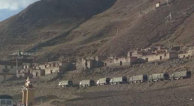 Armee-Lastwagen rücken in die Dörfer von Driru ein