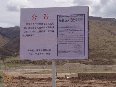 Chinesische Polizei in Luchu vertreibt Tibeter von ihrem neu erworbenen Grund und BodenDie chinesischen Sicherheitskräfte in der Provinz Gansu zwangen letzte Woche Tibeter, den Grund und Boden, den sie rechtmäßig erworben hatten, zu räumen. Sie schlugen sie und nahmen 15 von ihnen fest, als die Lokalbehörden behaupteten, das Land gehöre dem Staat. Wie ein dortiger Bewohner RFA mitteilte, kam es am 12. Mai zu dem Vorfall im Bezirk Luchu in der Provinz Gansu, als etwa 200 sowohl bewaffnete als auch unbewaffnete Polizisten plötzlich auf einem Stück Land ein wenig außerhalb der Bezirksstadt auftauchten. „Die Sicherheitsbeamten erklärten den tibetischen Grundstückseigentümern drohend, das Land gehöre dem Staat und niemand habe das Recht, es zu kaufen, zu besitzen oder irgendwie zu nutzen“. Die Polizei stellte ein Schild auf, auf dem stand, der Grund und Boden sei illegal verkauft worden und die Bezirksregierung habe seine Konfiszierung angeordnet. Die Tibeter, die entgegneten, sie hätten riesige Summen ausgegeben, um das Land zu kaufen, veranstalteten einen Sitzstreik und weigerten sich, aufzustehen. Da griff die Polizei die Gruppe an und entfernte einige gewaltsam von dem Ort. „Daraufhin wurde das Gelände mit Stacheldraht abgeriegelt“. „Eine Person wurde so schwer verletzt, daß sie zur Behandlung in ein Krankenhaus kam“. Wann die Tibeter, die das Land beanspruchen, es erworben haben und von wem, ist im Augenblick nicht bekannt. Der Bezirk Luchu war im März der Schauplatz des Selbstverbrennungsprotestes eines tibetischen Mönches, der sich als eine Herausforderung an die chinesische Regierung in Brand setzte und starb. Der 28jährige Konchog (1) 28.3.2013 „Tibetischer Mönch stirbt bei seinem Feuerprotest gegen die skrupellose Politik Chinas“ |