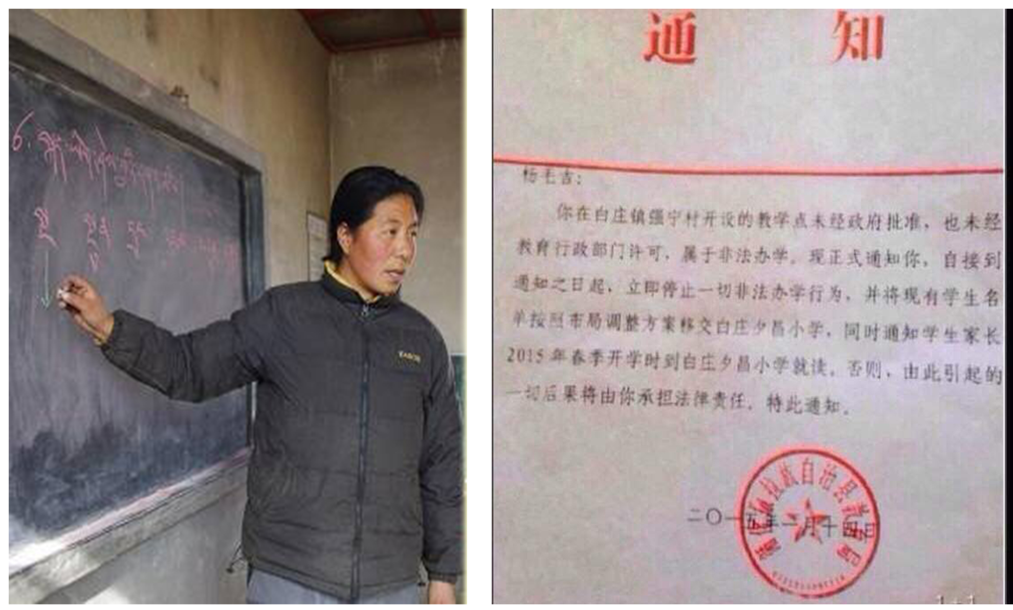 Tibetischlehrer und Order zur Schließung (Bild:RFA)