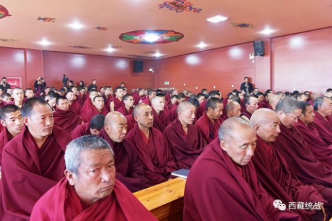 Jampa Kelsang, der Direktor des Medien- und Bildungsausschusses des Klosters Sera, ermahnte die Versammelten, „Chinas Großherzigkeit in Tibet“ stets zurückzuzahlen, indem sie sich Peking gegenüber loyal verhalten und die obersten Staatsführer der herrschenden Kommunistischen Partei Chinas lieben.