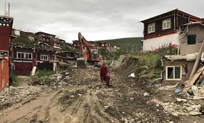 Quellen aus der Gegend zufolge wurden zwischen 2017 und 2018 mindestens 4.820 tibetische und han-chinesische Mönche und Nonnen aus Larung Gar hinausgeworfen, während über 7.000 Behausungen und andere Bauten seit 2001 abgerissen wurden.