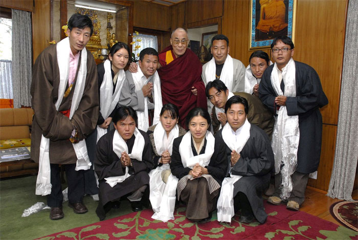 Gruppenbild der Mitarbeiter des TCHRD mit Seiner Heiligkeit dem Dalai Lama