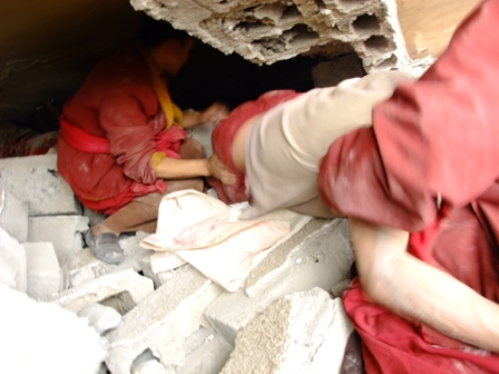 High Peaks Pure Earth übersetzte einen Brief eines tibetischen Mönches aus der am 14. April von dem schweren Erdbeben ereilten Gegend in Kyegudo (Kham), der ursprünglich am 21. April 2010 auf Tibetisch geschrieben wurde “Benutzt das tragische Ereignis nicht als Vorwand, um Euch in Szene zu setzen“ - Brief eines Mönches aus KyegudoDas Erdbeben, das Kyegudo am 14. April um 7.40 Uhr traf, war ein wirklich sehr heftiges. Als erstes hörte ich, daß unser Kloster schwer beschädigt wurde und zwei Mönche umgekommen seien. Kurz darauf kamen weitere Schreckensnachrichten, eine um die andere, die Zahl der Toten steige und steige… Über zweihundert Mönche unseres Klosters brachen sofort nach Kyegudo auf, um die Verschütteten zu retten, aber wegen des starken Verkehrs auf der Straße dorthin, erreichten wir den Ort der Katastrophe erst um acht Uhr abends. Als wir ankamen, wurde uns klar, daß es tatsächlich ein verheerendes Erdbeben war. Die Strommasten waren umgestürzt und die Häuser dem Erdboden gleichgemacht. Als wir zu dem für die Organisation der Bergungsarbeiten zuständigen Büro in der Stadt gingen und fragten, wo wir mit unserer Arbeit beginnen sollten, um Menschenleben zu retten, hieß es, das Büro sei an diesem Tag schon geschlossen, wir sollten am folgenden Tag wieder nachfragen. Wir wußten, daß Hilfe dringend notwendig war, und so rannten wir einfach überall dort hin, wo wir meinten, daß Menschen unter den Trümmern liegen könnten. Wir kamen zu einer teilweise zerstörten Schule, in der vermutlich um die zwanzig Schüler eingeschlossen waren. Wir sahen, wie einige chinesische Soldaten in den Ruinen gruben und versuchten, zu den Schülern zu gelangen. Wir befanden uns hinter dem Gebäude, von wo aus wir den Unterkörper eines Schülers in einem Loch stecken sahen. Jemand sagte: „Noch ehe der Tag zur Neige geht, könnten diese Kinder sterben“. Der Schrei eines Schülers war unter den Trümmern zu hören. Als die Mönche versuchten, die zerbrochenen Balken und Fliesen mit Seilen wegzuziehen, trat ein Soldat heran und fragte: „Was tut ihr denn da?“ Wir antworteten: „Unter den Ruinen ist ein Schüler gefangen“. Er warf einen Blick auf die Szene und bemerkte nur: „Ha, ha, der Schüler ist doch schon tot, sein Kopf ist zerschmettert, und für euch ist es gefährlich auf den Trümmern zu stehen“. Wir wollten aber das Leben des Schülers retten, und einer von uns entgegnete dem Chinesen: „Ich habe keine Bedenken, in das Loch zu steigen, wenn ich dem Schüler das Leben retten kann“. Aber man hat es ihm verboten, und so konnten wir nichts tun, als uns zusammen mit den chinesischen Soldaten von der Vorderseite des Gebäudes aus durch den Schutt zu wühlen. Vielleicht ist es wegen unserer mitleidvollen Herzen oder aus Liebe zu unseren Landsleuten, aber alle Mönche hatten genügend Kraft, um zu den Rettungsarbeiten beizutragen. Als wir so hart arbeiteten, um auf den Grund der Trümmer zu gelangen, starrten uns die Soldaten nur verblüfft an. Nach einiger Zeit kamen die Medien, und dann passierte wieder etwas, was uns sehr überraschte: Ein Mann, von dem es hieß, er sei der Distriktvorsteher, packte einen Mönch an der Schulter und fuhr ihn an: „Schert Euch weg von hier, auf, geht weg“. Als der junge Mönch etwas erwidern wollte, hielt ihn ein älterer Mönch zurück und sagte: „Bitte handle nicht so, unsere wichtigste Aufgabe im Augenblick ist, den Menschen das Leben zu retten.“ Als wir diese Stelle verließen, griffen die Soldaten nach den Schaufeln und Seilen und gaben vor, die unter den Trümmern liegenden Menschen herauszuziehen, während die Medien sie filmten. Da kam mir die Frage in den Sinn, was wohl Priorität habe: Menschenleben zu retten oder die Soldaten zu filmen? Und nachdem sie vor den Filmteams ihre Arbeit geleistet hatten, entfernten sich die Soldaten alle wieder. Es hieß, sie seien an einen anderen Platz in der Stadt gegangen, wo Verschüttete liegen. Aber die Wahrheit ist, daß sie in die Berge geflohen sind, als sie hörten, daß der Staudamm in dem etwas weiter oben gelegenen Dorf großen Schaden erlitt und die in Schutt liegende Stadt jeden Augenblick mit einer Flutwelle überschwemmen könnte. Ein Mann aus der Gegend von Nangchen, dessen Vater umgekommen ist, kommentierte: „Ein Erdbeben dieser Art ist eine Naturkatastrophe. Dagegen kann man nichts machen. Aber solche Gerüchte tragen dazu bei, dass unterlassen wird, Leben zu retten, die noch zu retten wären“. Um 7 Uhr am nächsten Morgen gingen wir wieder zum Katastrophenbüro und setzten unsere Arbeit in dem Trümmerhaufen fort. Die Leiche einer Hausfrau aus dem Bezirk Nangchen kam zu Tage und ihr zwei Jahre alter Sohn steckte unter den Trümmern des zweiten Stockwerks. Wir hofften, daß der Sohn noch lebe, so gruben wir mit den Soldaten weiter, bis diese wieder wegrannten, als es eine Reihe von Nachbeben gab. Als ich dieses Benehmen der chinesischen Soldaten sah, fragte ich mich, wo alle diese tapferen Helden des Erdbebens von Wenchuan denn abgeblieben seien, und warum sie denn in Kyegudo nicht zu sehen sind. Als die Soldaten zum Mittagsessen weggingen, flehte ein kleiner Junge unter Tränen, sie möchten doch sobald wie möglich zurückkommen, um seine Familie zu retten. Als ich diese Szene mit eigenen Augen sah, war ich dermaßen erschüttert, daß ich innerlich entsetzlich litt. Die Rettungsmannschaften der Armee zogen sich, sobald sie nur den geringsten Hunger verspürten, immer wieder in ihr Lager zurück. Als ich diesen Gedanken nachhing, wurde mir klar, daß all die Fernsehprogramme meinen Geist nur verwirrt hatten und jeder im TV Gezeigte ein perfekter Schauspieler ist. Tatsache ist, daß die Rettungsarbeit kein einfacher Job ist. Wenn beispielsweise ein Teil eines zweistöckigen Gebäudes eingefallen ist, kann auch die andere Seite jederzeit einstürzen, weshalb sich die Leute, die daneben nach Verschütteten graben, einer großen Gefahr aussetzen. Daher mü
