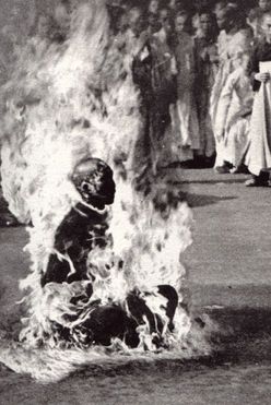 Selbstverbrennung als eine Tat des Protestes erhielt einen ikonenhaften Status durch Malcom Brownes Schwarzweiß-Foto eines Mönches in Flammen von 1963. Thich Quang Ducs Verbrennung während des Vietnam-Krieges machte Geschichte und fand bald Nachahmung bei vielen, die sich später aus Protest gegen Amerikas Krieg gegen das kommunistische Vietnam anzündeten.