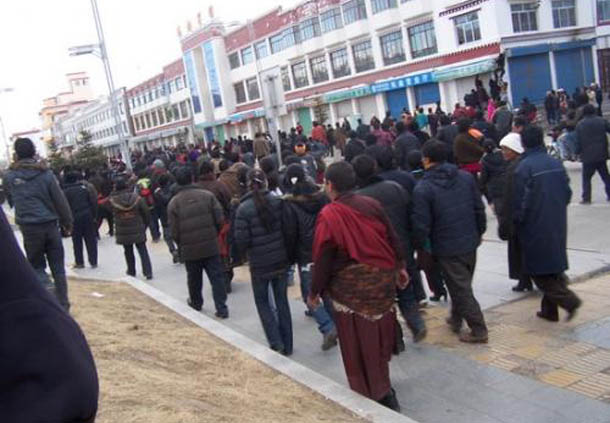 Tibeter demonstrieren 2008 in Machu in Amdo