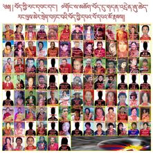 Über diesem Bild steht auf Tibetisch: Die "Helden und Heldinnen", die sich für die Freiheit Tibets und die Rückkehr des Dalai Lama nach Tibet in Brand setzten