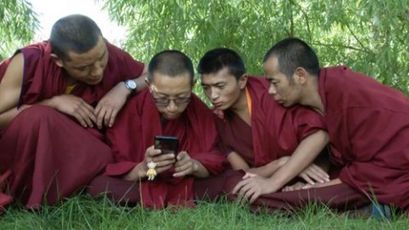 Mönche spielen ein WeChat Spiel, um Gesetze zu lernen