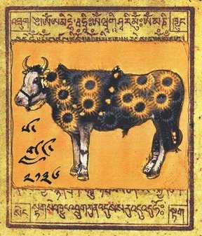 Anm. des Übs: Das tibetische Königsjahr ist die Anzahl der Jahre seit der Thronbesteigung des ersten tibetischen Königs Nyatri Tsenpo im Jahre 127 v. Chr. Es müssen daher 127 Jahre zu unserer Zeitrechnung hinzugerechnet werden, also 2009 + 127 = 2136. Durch die Verknüpfung von zwölf Tiernamen mit fünf Elementnamen ergibt sich ein 60 Jahre dauernder Rabjung genannter Zyklus. Wir befinden uns im 17. Zyklus des laufenden Großzyklus (60 x 60), der im Jahr 1027 unserer Zeitrechnung begonnen hat.