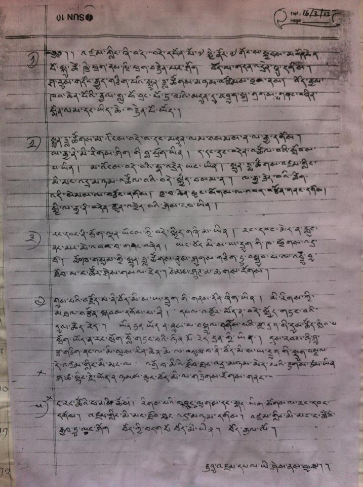 4. Was ich hier mitteilen möchte, ist das Anliegen von sechs Millionen Tibetern. Jetzt, wo wir uns endgültig auf unser Ziel zu bewegen: Wenn ihr Reichtum besitzt, ist es Zeit, ihn einzusetzen. Wenn Ihr Qualitäten habt, ist es nun Zeit, sie zu nutzen, um zu Ergebnissen zu kommen. Wenn Ihr über Euer Leben bestimmen könnt, meine ich, der Tag sei gekommen, Euer Leben hinzugeben. Der Zweck, daß Tibeter in unserem 21. Jahrhundert ihren kostbaren Körper verbrennen, ist, daß die Welt von dem Leiden der sechs Millionen Tibeter erfahre, daß ihnen die grundlegenden Menschenrechte vorenthalten werden. Wenn Ihr Liebe und Mitgefühl habt, dann steht auf für das hilflose tibetische Volk!