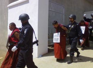 Der Mönch Losang Thubten wird nach einem Solo-Protest im Mai 2016 in Ngaba, Osttibet, von der Polizei festgenommen. Losang Thubten trug ein Porträt des Dalai Lama und ging die Hauptstraße der Stadt Ngaba entlang, die unter den Tibetern als „Straße der Märtyrer“ bekannt ist, da dort über die Jahre viele Proteste stattgefunden haben. Der Grad der Sicherheit und Überwachung in Tibet macht groß angelegte Proteste heute fast unmöglich, so daß Einzelproteste die gewählte Methode einiger Tibeter sind, auch wenn sie unweigerlich zu Verhaftungen und langen Gefängnisstrafen führen.